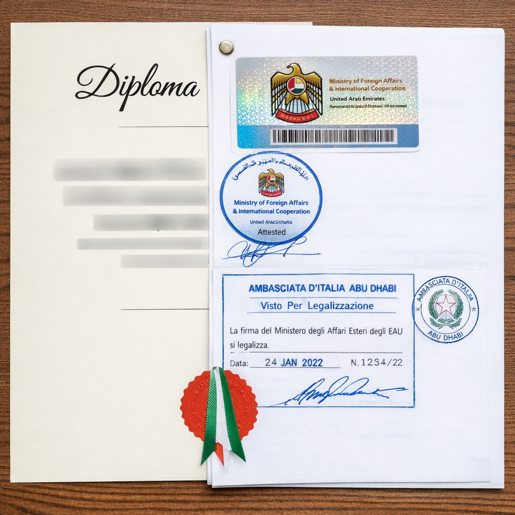 Il diploma originale deve essere attestato dal MOFAIC. È il timbro che certifica che il documento è autentico per lo Stato emiratino.
