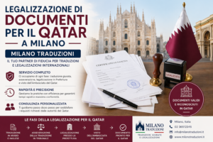 La legalizzazione di documenti per il Qatar a Milano è un passaggio fondamentale per chi deve utilizzare atti italiani nel territorio qatariota. Che si tratti di motivi lavorativi, commerciali o personali, è indispensabile che i documenti siano riconosciuti ufficialmente dalle autorità del Qatar. Milano Traduzioni offre un servizio completo e professionale per gestire ogni fase di questo processo complesso.